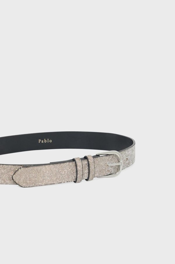 La REYNA est une ceinture en cuir parée de strass. Souligne la taille avec festivité et élégance.