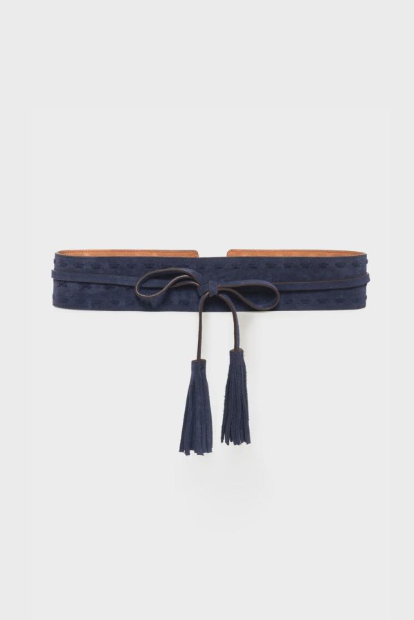 Sublimez votre taille avec cette ceinture corset IRINA en cuir velours, qui se noue pour un ajustement parfait. Son tressage délicat et ses pompons apportent une touche bohème-chic, alliant élégance et originalité.