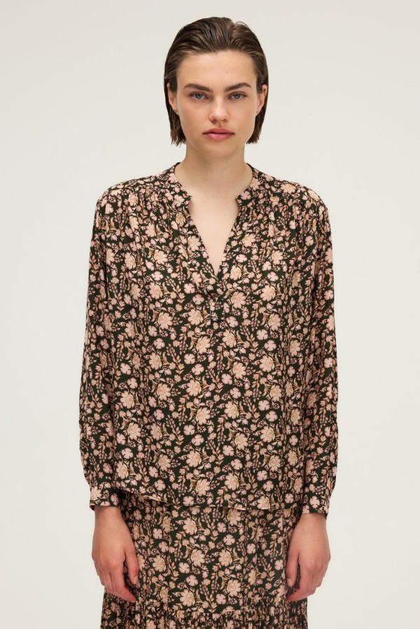 Chemises & Blouses Pablo Femme | Blouse Fluide à Fleurs Vert Kaki ALBANE
