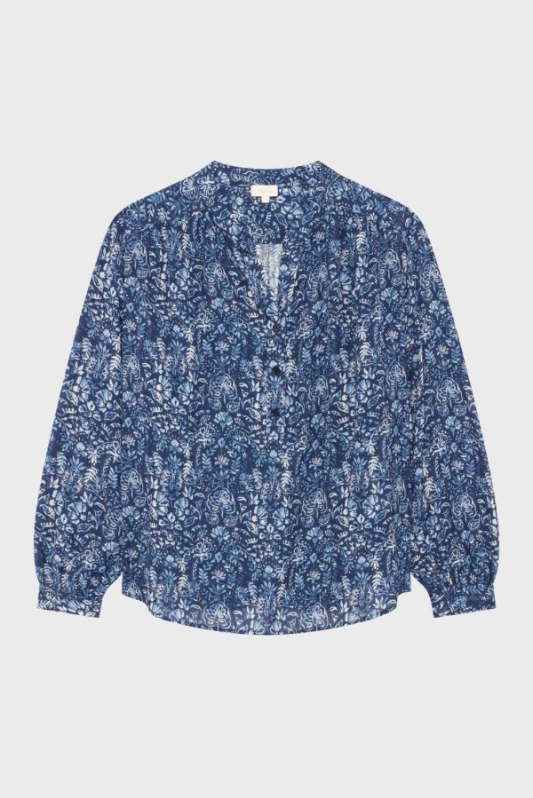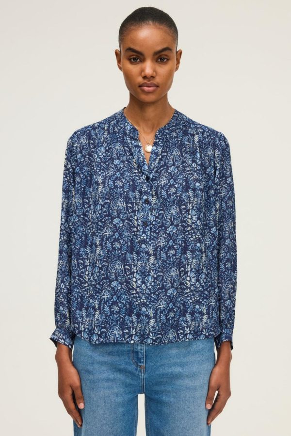 Chemises & Blouses Pablo Femme | Blouse Fluide Imprimé Végétal Indigo AKINA