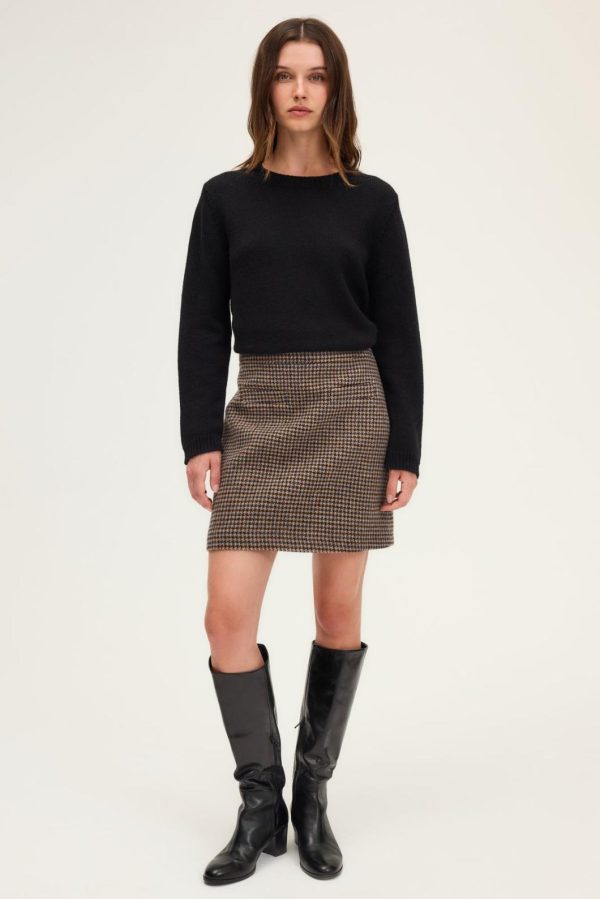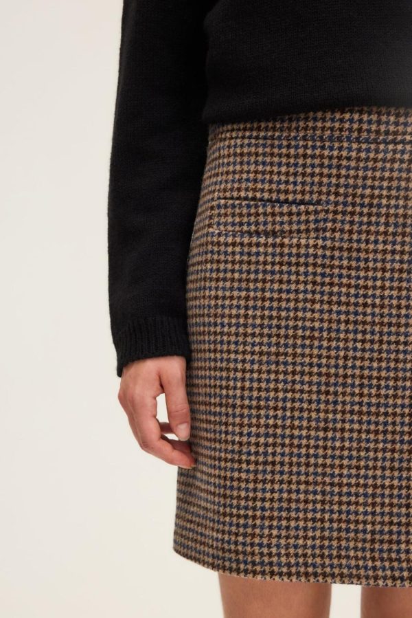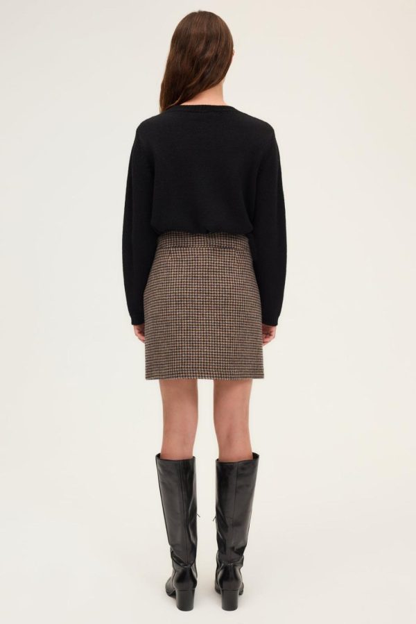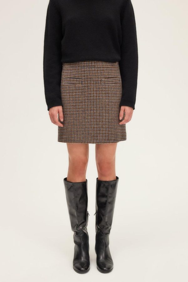 Look preppy chic pour cette jupe courte à motif pied de poule. A porter avec la veste assortie pour un esprit tailleur, ou avec un pull en maille pour jouer le classique décontracté. 100% laine vierge.