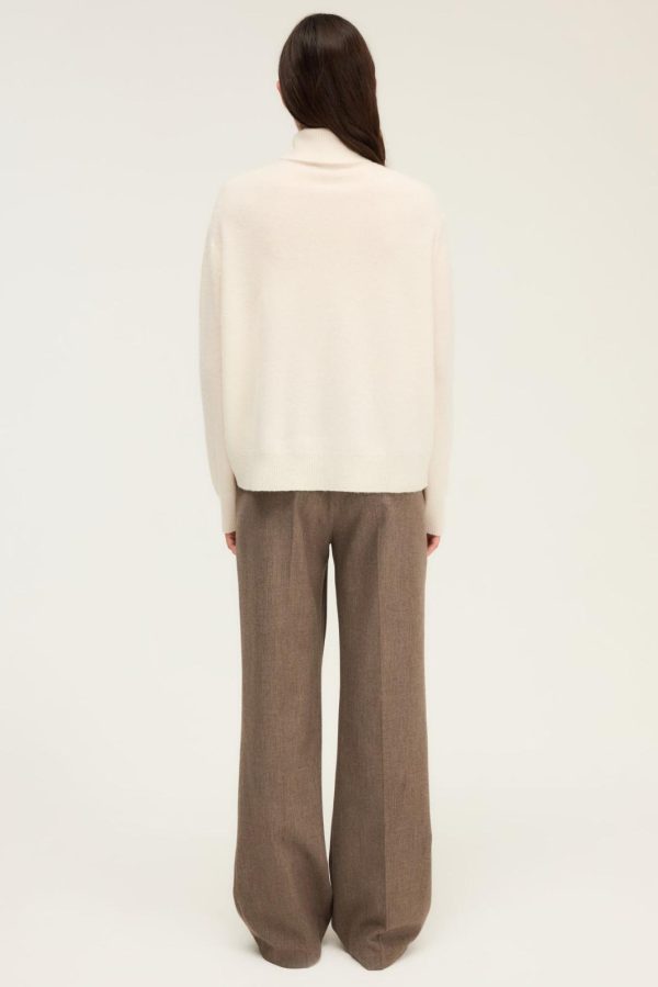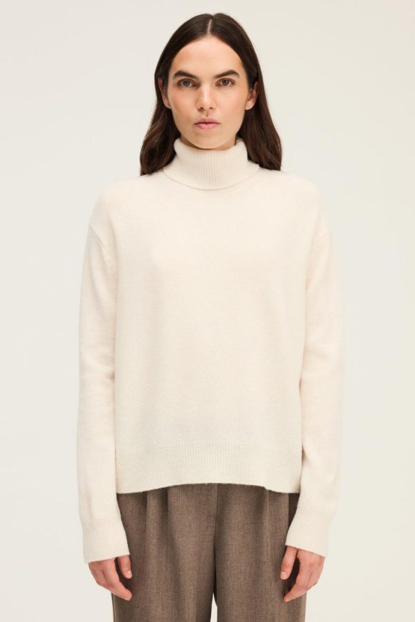 Le pull à col roulé en laine Evana est l’allié du plein hiver. De coloris blanc, au volume ample et épaules tombantes, il offre un look chic et contemporain. Confectionné en 100% laine.