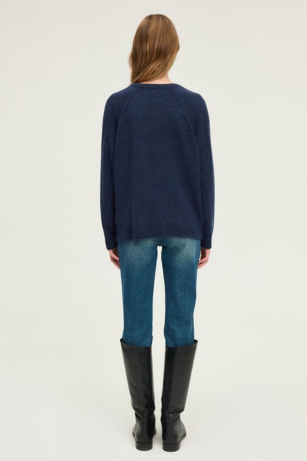 Pull à col rond en 100% laine bleue foncée à l’aspect légèrement chiné pour un porter décontracté. Il se démarque par ses coutures en relief qui apporte style et modernité.