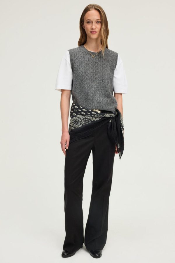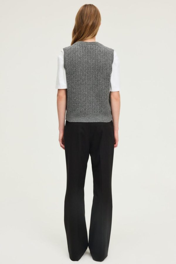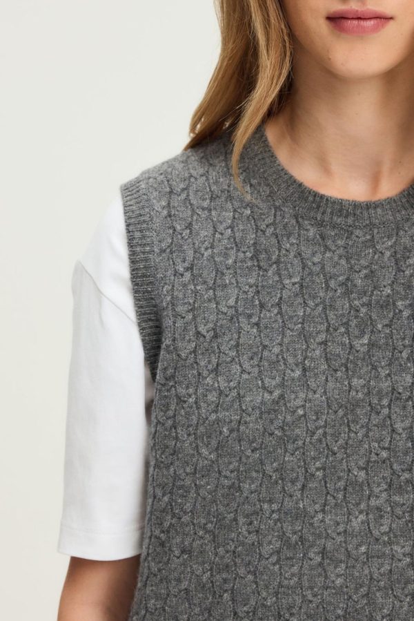 Maille Pablo Femme | Pull à Torsades En Laine Sans Manche Gris Chiné ELWINNA