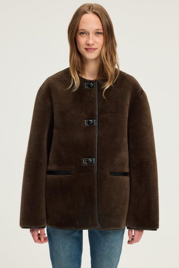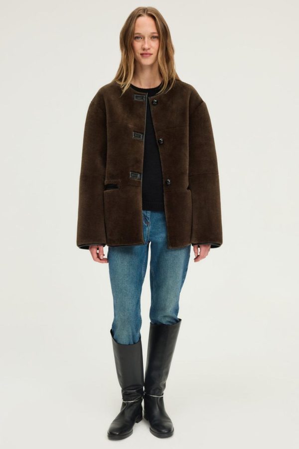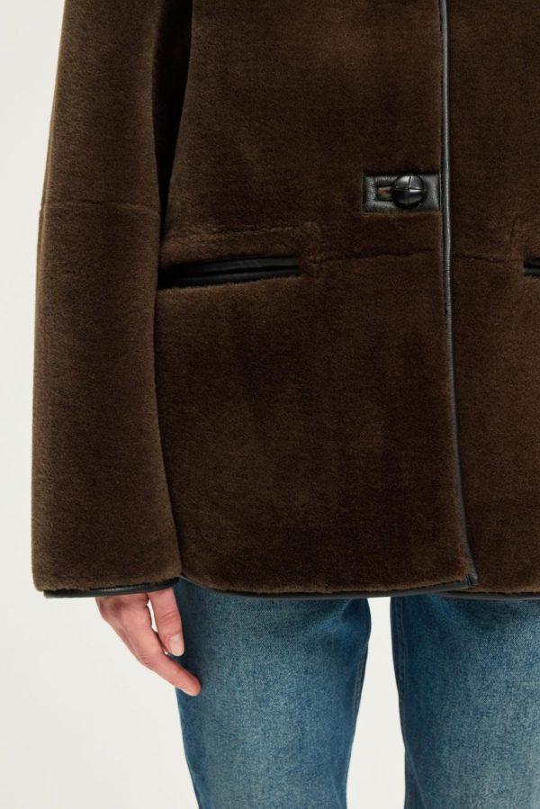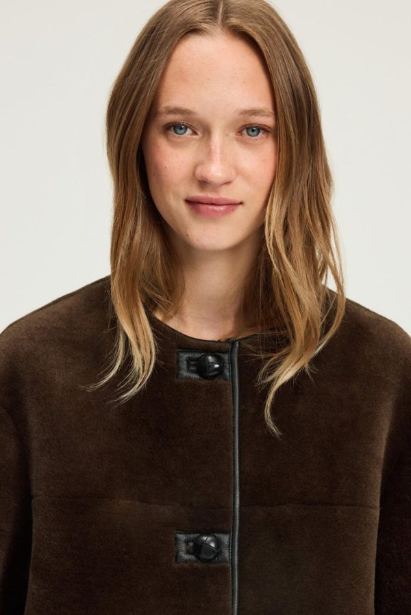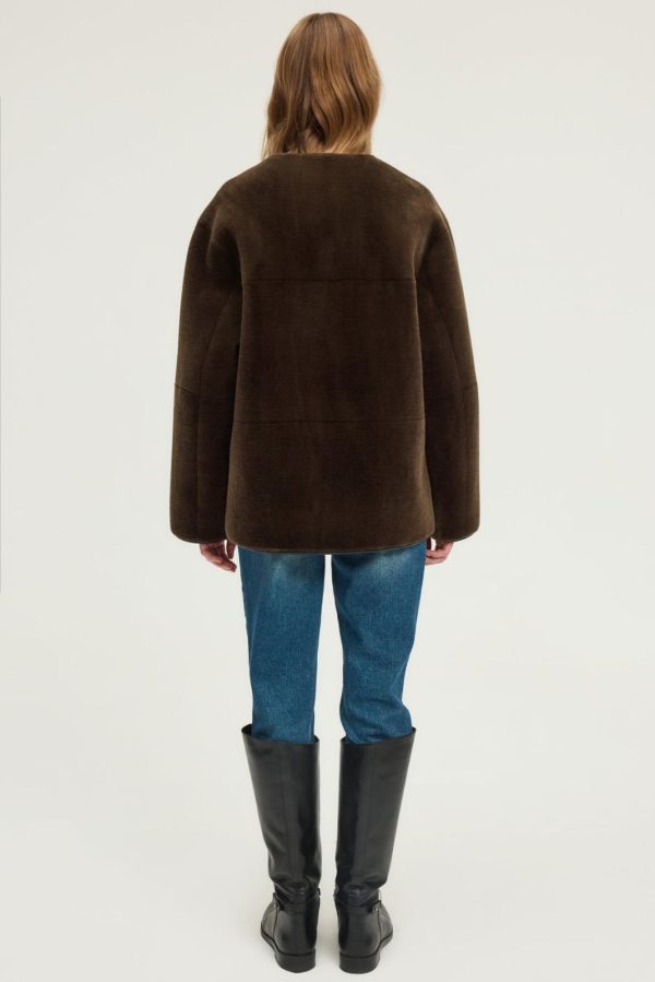Accents seventies pour ce manteau en fausse fourrure kaki et doublé en simili cuir. Ses épaules tombantes et son volume oversize lui donnent une allure décontractée, tandis que sa longueur courte vient structurer la silhouette. Chaud et doux, il est une pièce d’hiver à la fois stylée et confortable.