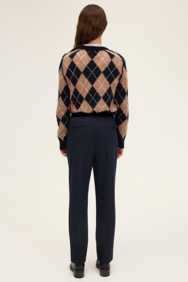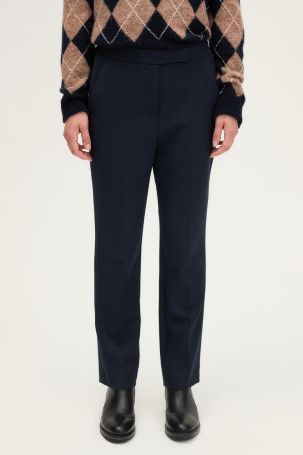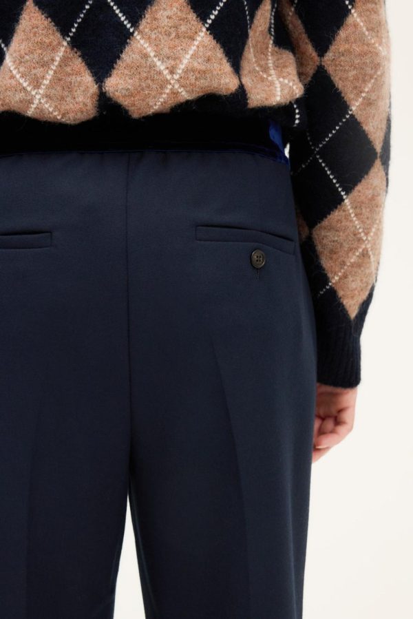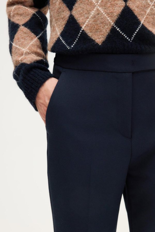 Pantalon droit au dos élastiqué pour un plus grand confort. A porter avec la veste assortie pour faire tailleur. Coloris bleu marine chic et intemporel.