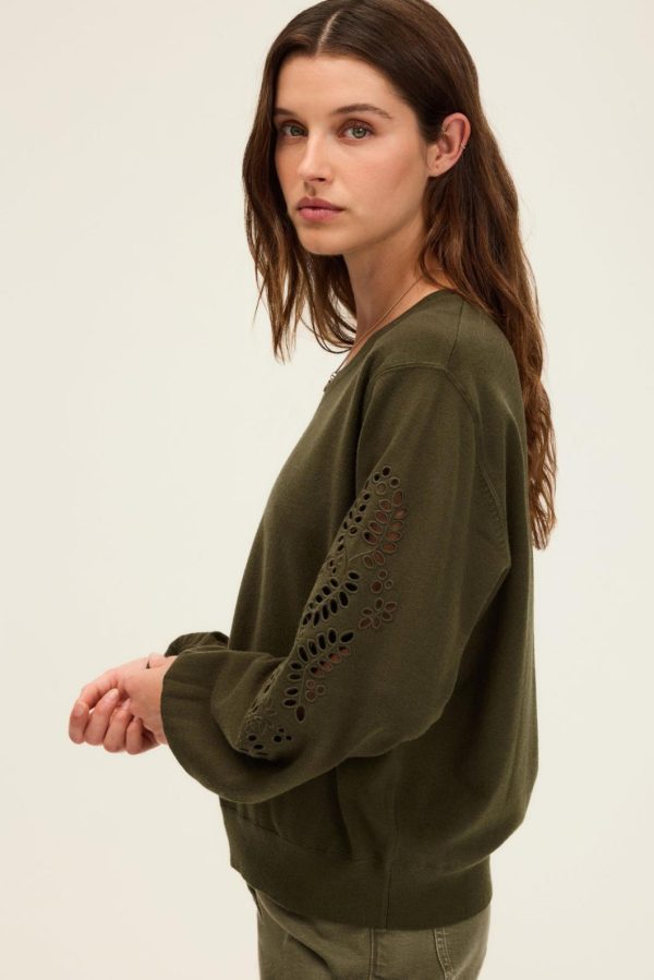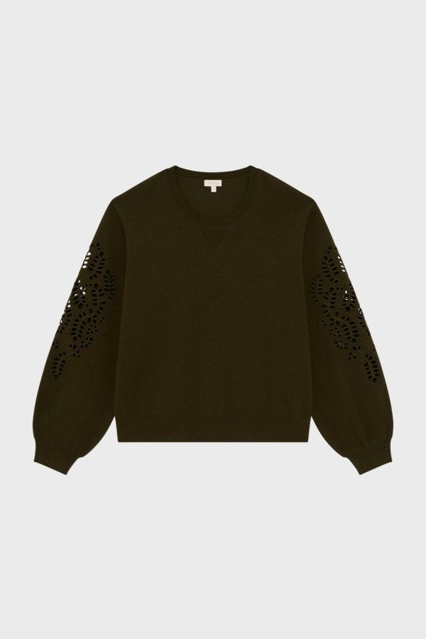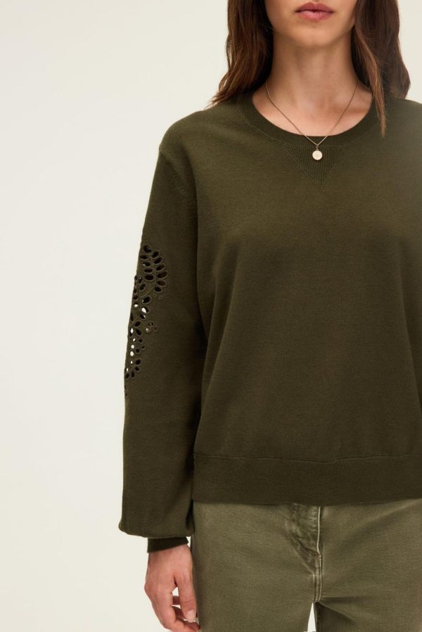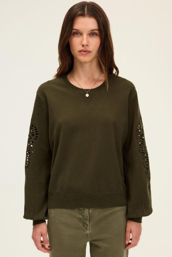 Tops & T-shirts Pablo Femme | Pull à Manches Ajourées Vert Kaki HIVA