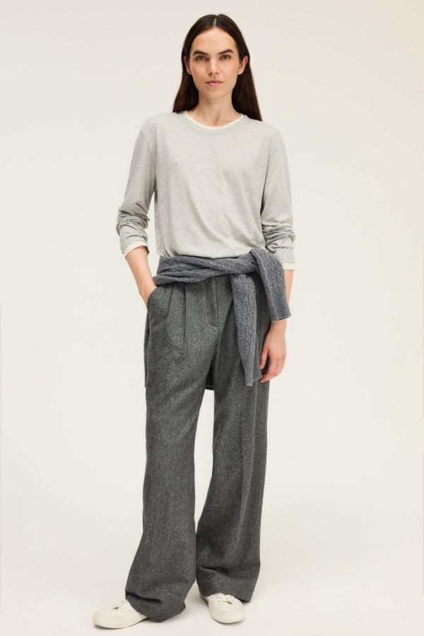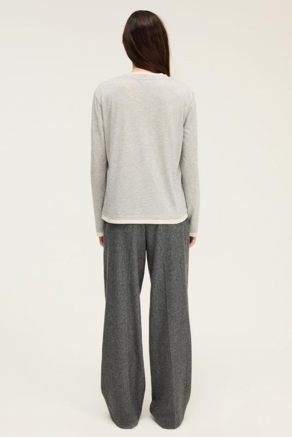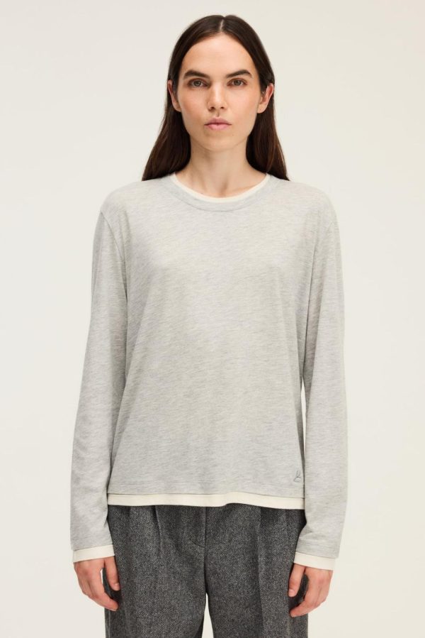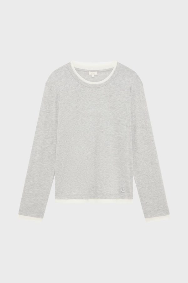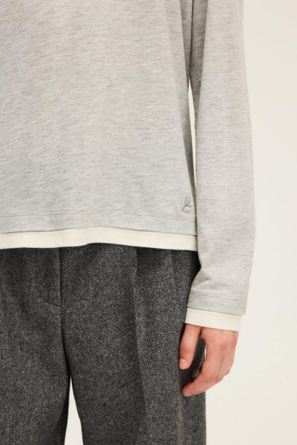 T-shirt gris et blanc pour un effet de superposition en trompe l’œil. Confectionné en coton et modal très doux.