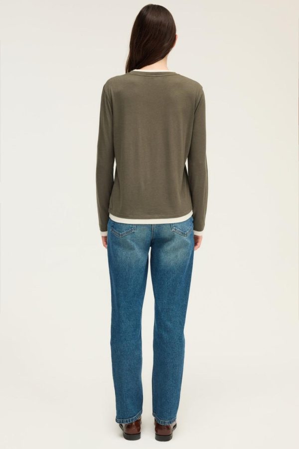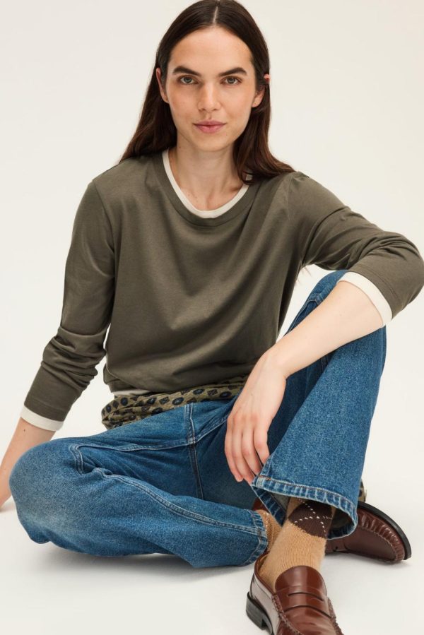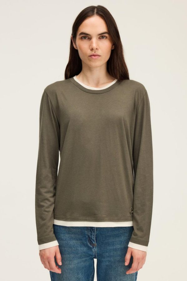 Tops & T-shirts Pablo Femme | T-shirt Trompe-l’œil Vert Kaki HALIMA