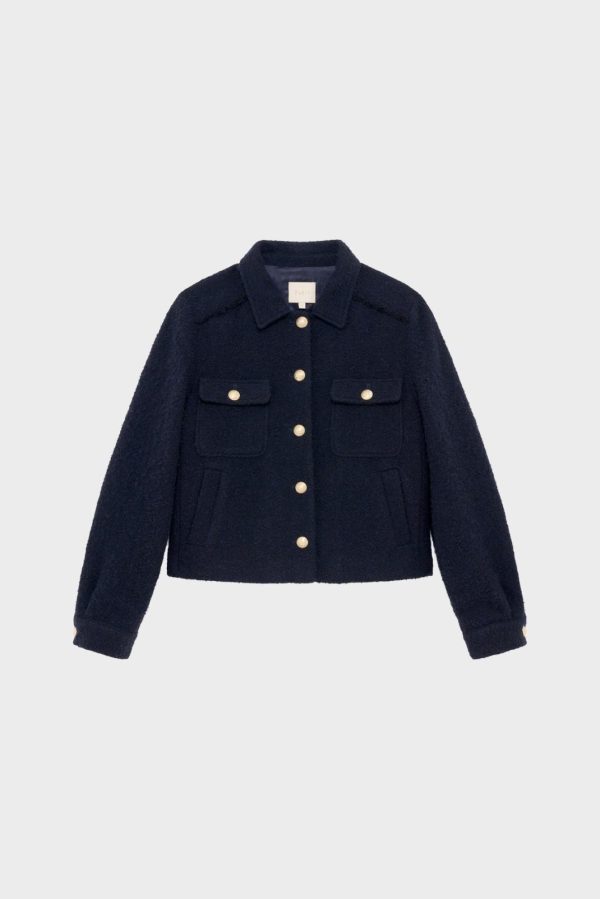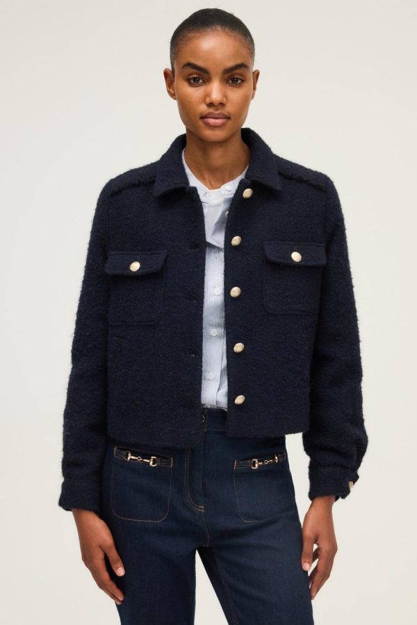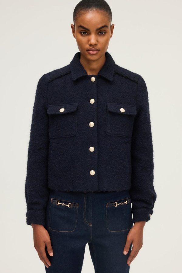 Esprit rétro chic pour cette veste en tweed uni ornée de boutons dorés. A porter avec la jupe assortie pour un total look, ou décalée avec un jean. Confectionnée en coton et laine mélangés bleu marine.